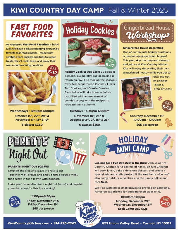 Launched in October 2015, the new Kiwi Country Kitchen is a year-round, culinary-focused experience that specializes in birthday parties, after-school enrichment classes, Ladies Night Out and other specialty cooking classes for adults and children.